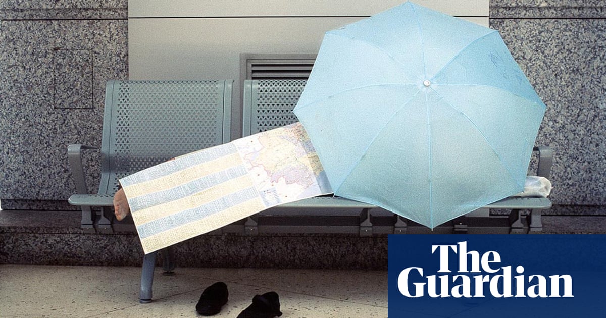 Soon I realised that the context – the way private and public mixed together – was important, so I started stepping back to get the whole scene. I would play with the composition of the surroundings, too. In one photograph, the image is framed so it looks like a statue has tripped and is falling on to a man napping beneath it. In another, I foregrounded a metal device used to stop cars from parking and made it look like a cradle, the same size as the sleeping figure in the background.