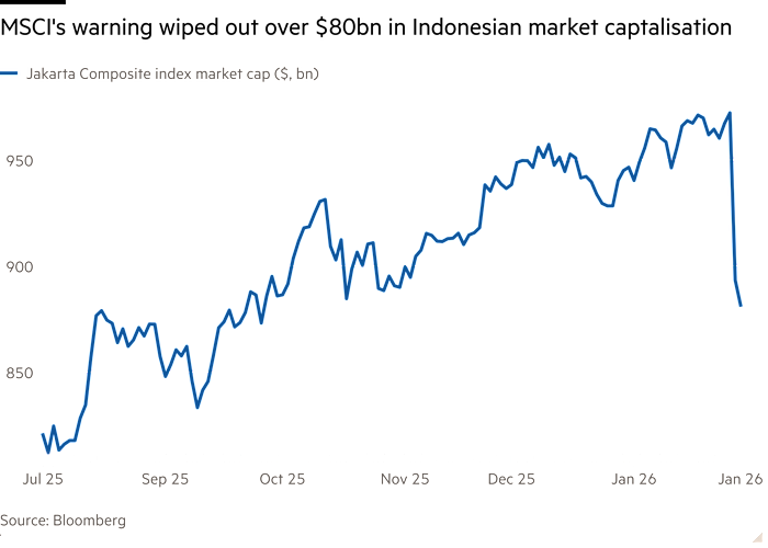 The volatile swings of some Indonesian shares have earned them the nickname saham gorengan or ‘deep fried stocks’, with their restricted floats and concentrated ownership contributing to rallies that can lift their tycoon owners into the ranks of Asia’s richest people almost overnight. In recent days, index provider MSCI has shone a light on this practice, threatening to downgrade Indonesia to a frontier market unless it cleans up its act by May. The announcement — citing “opacity in shareholding structures and concerns about possible co-ordinated trading behaviour that undermines proper price…