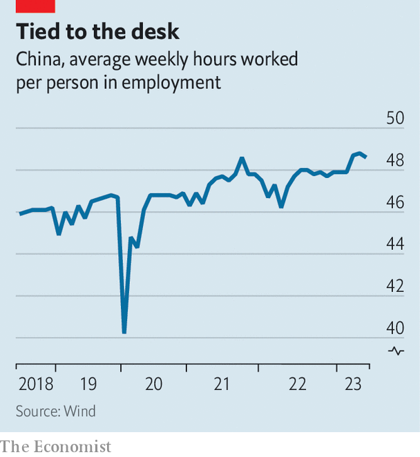 When the National Bureau of Statistics announced that in April workers across China toiled an average of 48.8 hours a week, the agency was ridiculed. That number includes government workers, wrote a commenter on Weibo, a Twitter-like platform. “Try counting only in private companies.” There is no need to count, wrote another, “just look at the lights of office buildings at night.” Low as it may seem to netizens, the average weekly number of hours worked is the highest it has been since the statistics bureau began including the data…